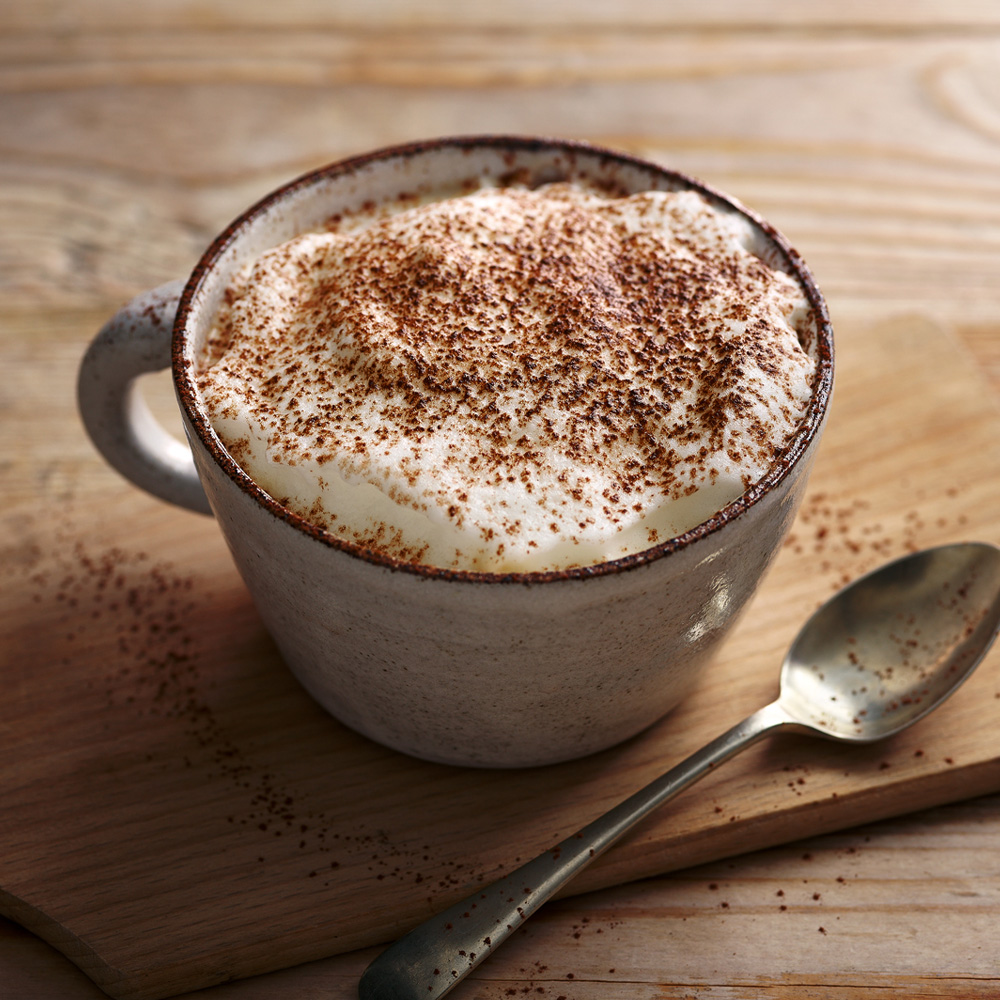 ۲۵۰ میلی لیتر، یک شات اسپرسو ۱۰۰% عربیکا، شیر، فوم شیر، سس شکلات